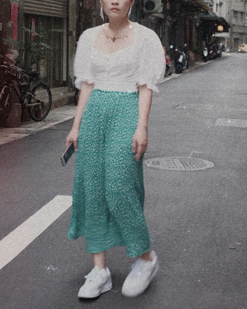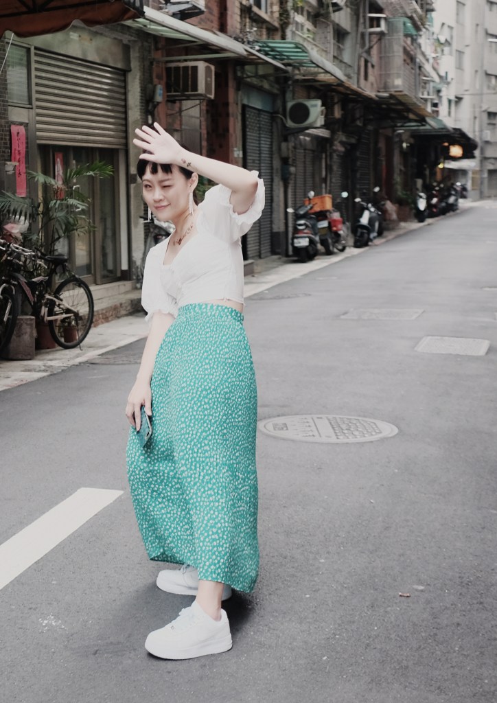 這件白色上衣剛發上IG STORY 就被問爆,其實只是ZARA,擔心他又是白色又是澎袖又是小花圖樣,太少女噁心,我試著搭了件俗艷的碎花裙,綠色較為中性,又不失春天氛圍,希望給人一種明亮感:)