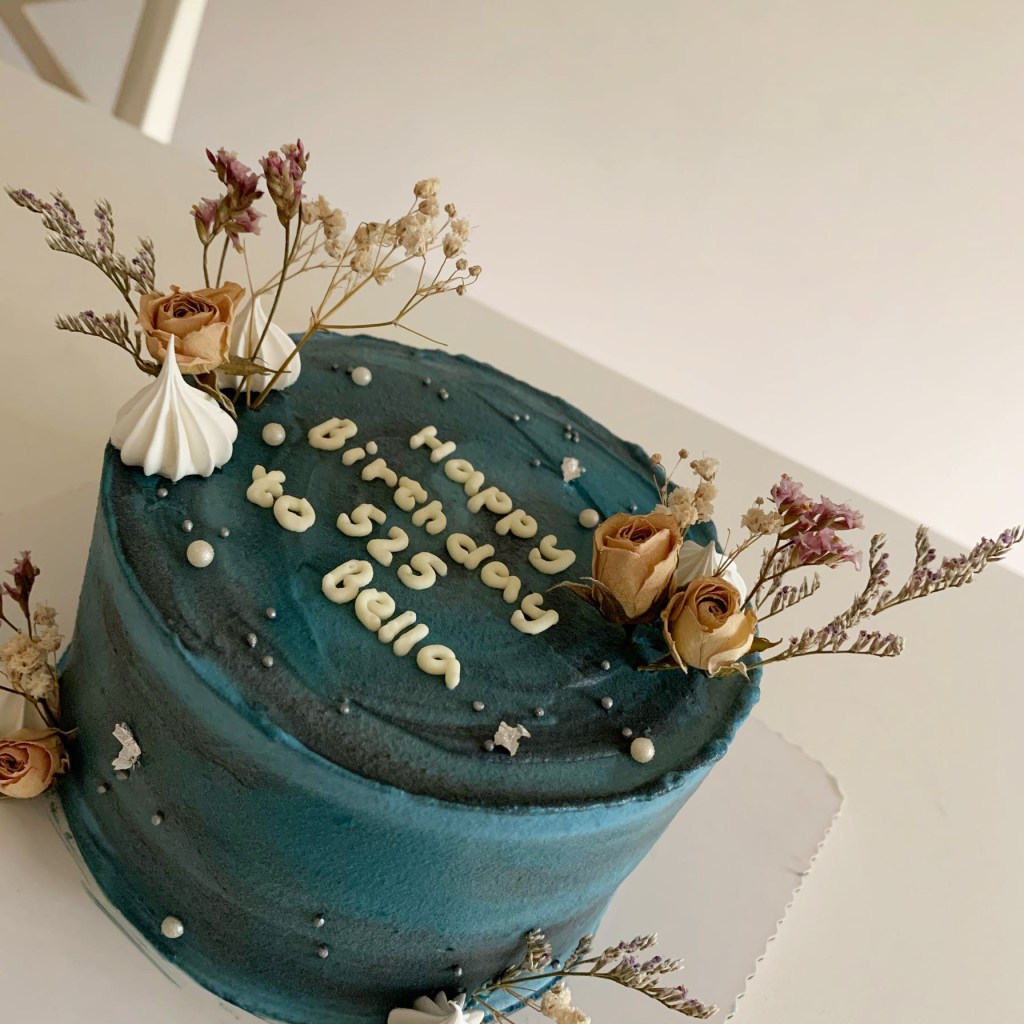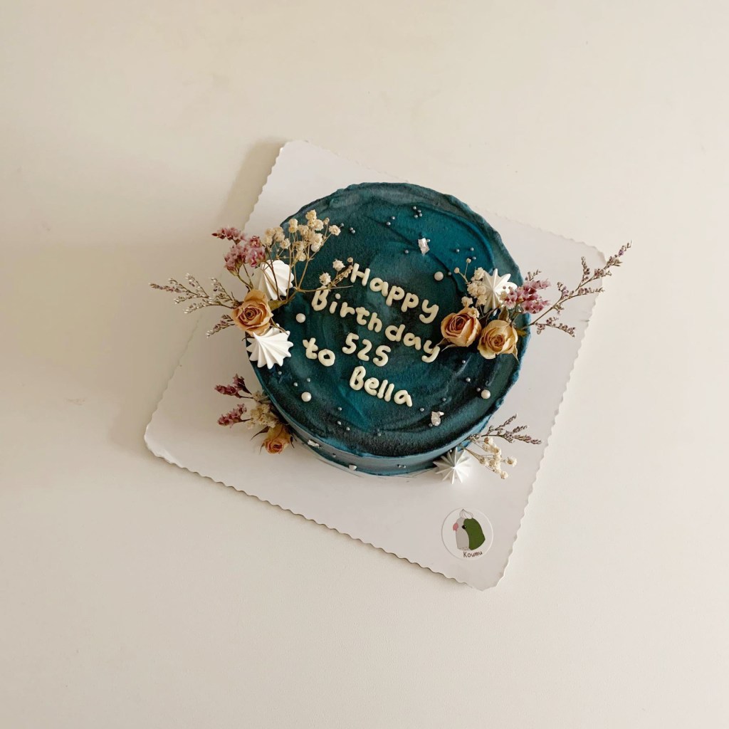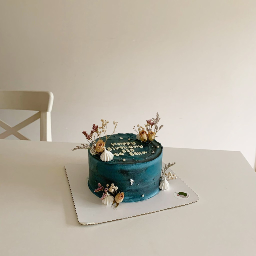 我很喜歡他運用的顏色層次,在視覺上呈現出一種深邃不失甜美的樣貌,像夜間的近海、也像乾季的星空,總之都是我愛的,寧靜悠遠的藍。其實認真說起來,他只是依循著一些基本架構去做調整的那種客製化蛋糕,但實在太厲害了,除了長得美,其實也非常好吃,切開來我有嚇到,吃了第一口也有驚艷,不管是伯爵茶的蛋糕體或是內部分層的莓果內餡,都沒在開玩笑,絕對是屬於有才華的人做的又美又好吃的客製化蛋糕。