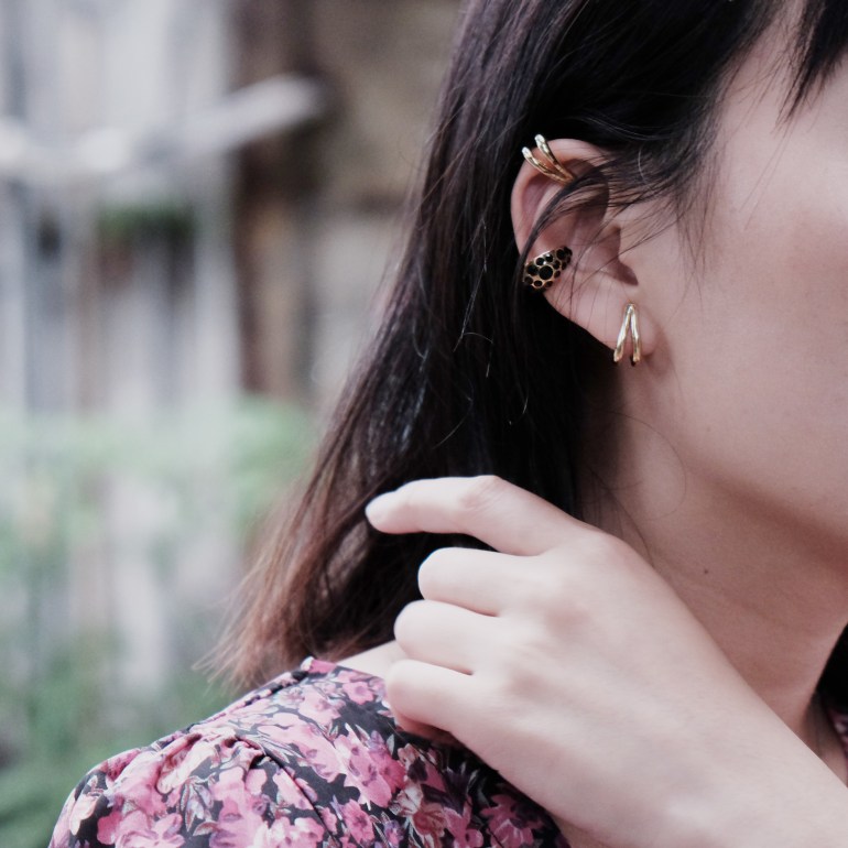 最近喜歡的飾品幾乎都點綴了一些黑色,耳扣很有中性風範,單顆的黑色珍珠項鍊更是特別,可說是近期最愛的。喜歡黑色的人,從心理學的觀點,似乎可以分成兩種,一種是理性沈穩,一種是不安避世,大家應該都有那種青少年時期,行為也不特別叛逆,但就是非常迷戀黑色,據說,這代表了想要暫時逃避世界的心念,是不想成為大人的意思。
