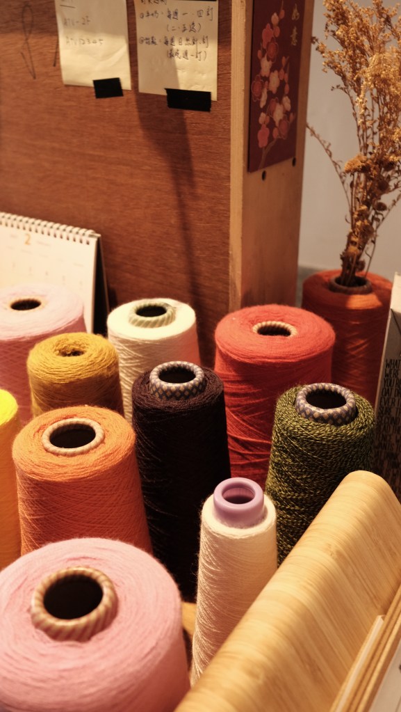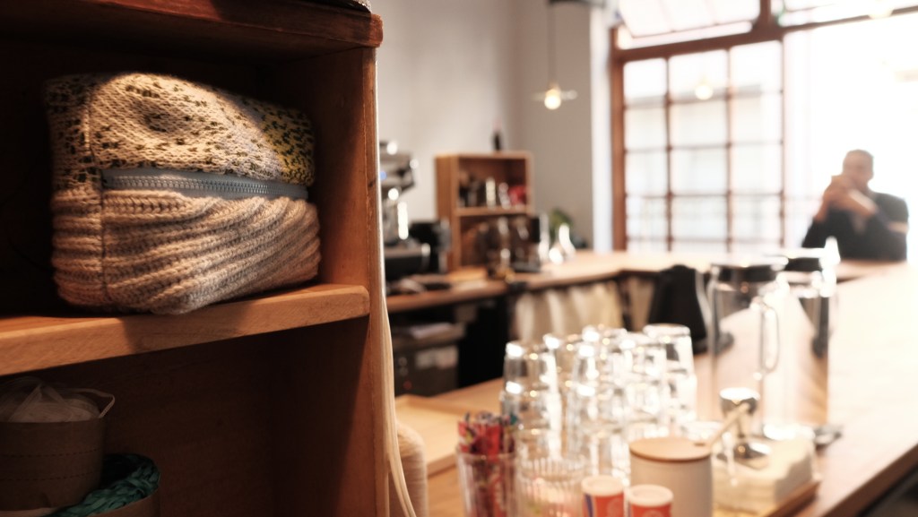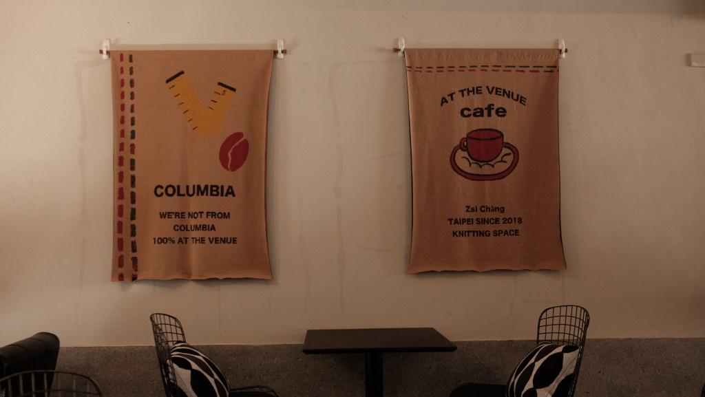 從北門站往永樂市場的方向,《在場》就在快到永樂附近的巷子裡。是一個以推廣針織文化為概念的複合式獨棟透天空間,一樓販售許多可愛針織小物,店面後方,正好就是他們的針織工坊,二樓是採光明亮的咖啡廳,三樓跟四樓則作為共享空間供人租用。喜歡老屋改造咖啡廳的人,很難不被現場那種溫暖沈穩的氛圍吸引,就像逢年過節回外婆家的感覺,陌生熟悉但莫名親近。