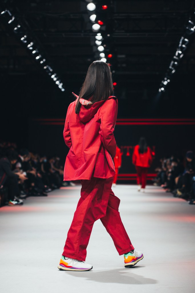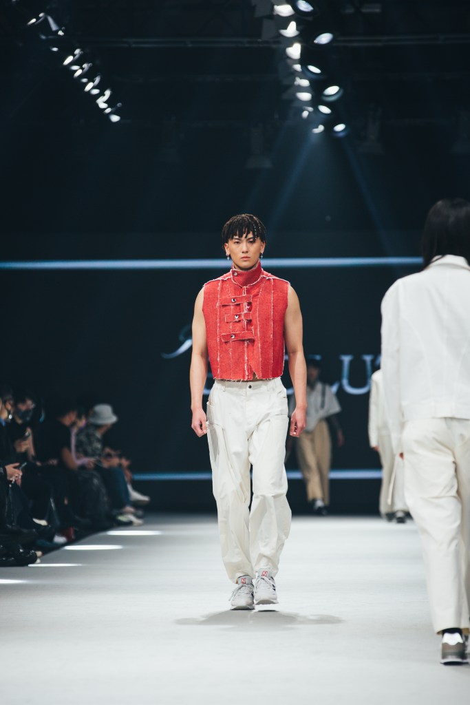 從無瑕的白色、絕對的紅色到無限可能的黑,帶出全系列從風格休閒裝、華麗正裝到充滿變化的基本著裝,以詩意手法破壞既有框架,拆解許多學生意象的服裝元素,如西裝外套、百褶裙…等等,透過解構、破損、顏料加工、不收邊等處理手法,呈現一種”有秩序的叛逆”。