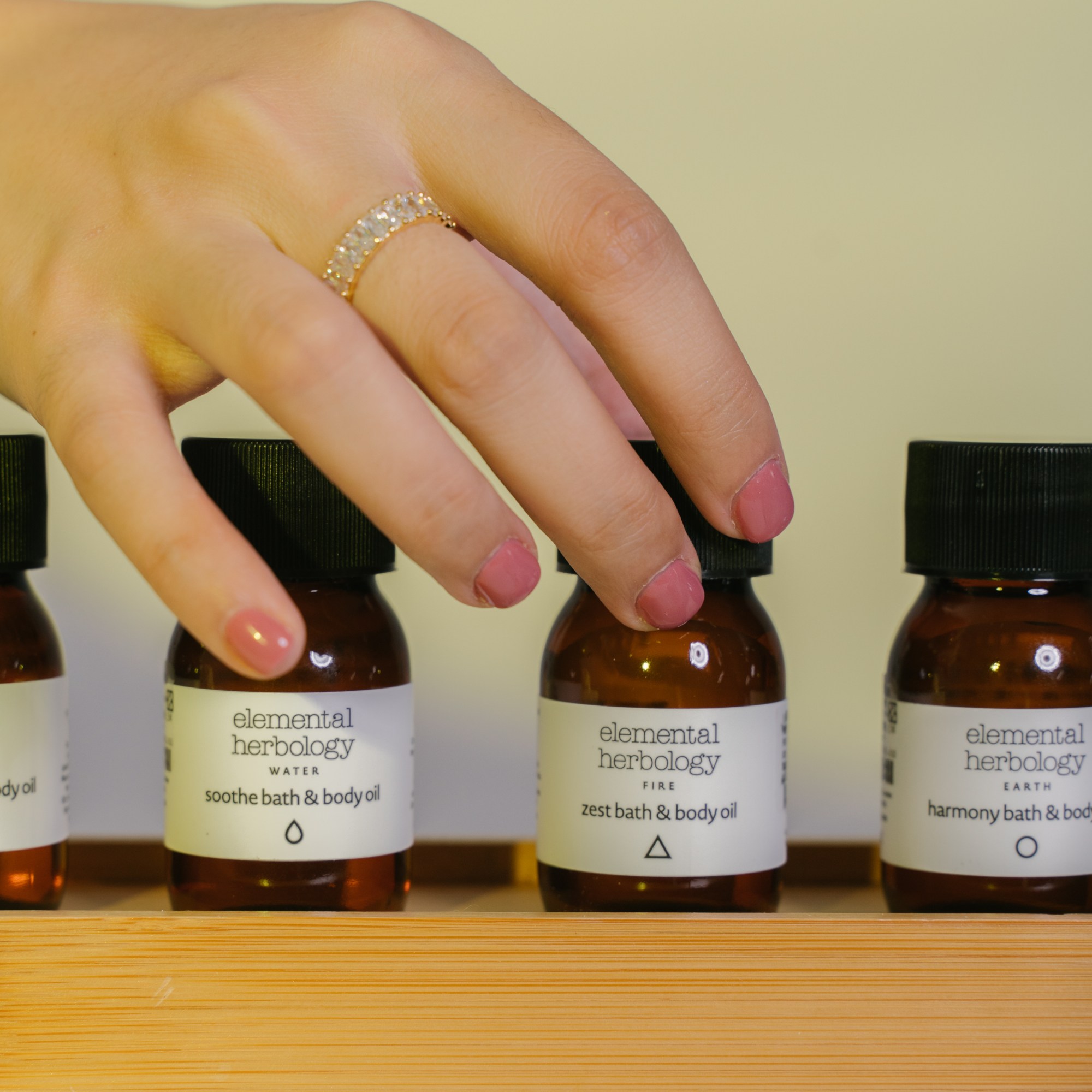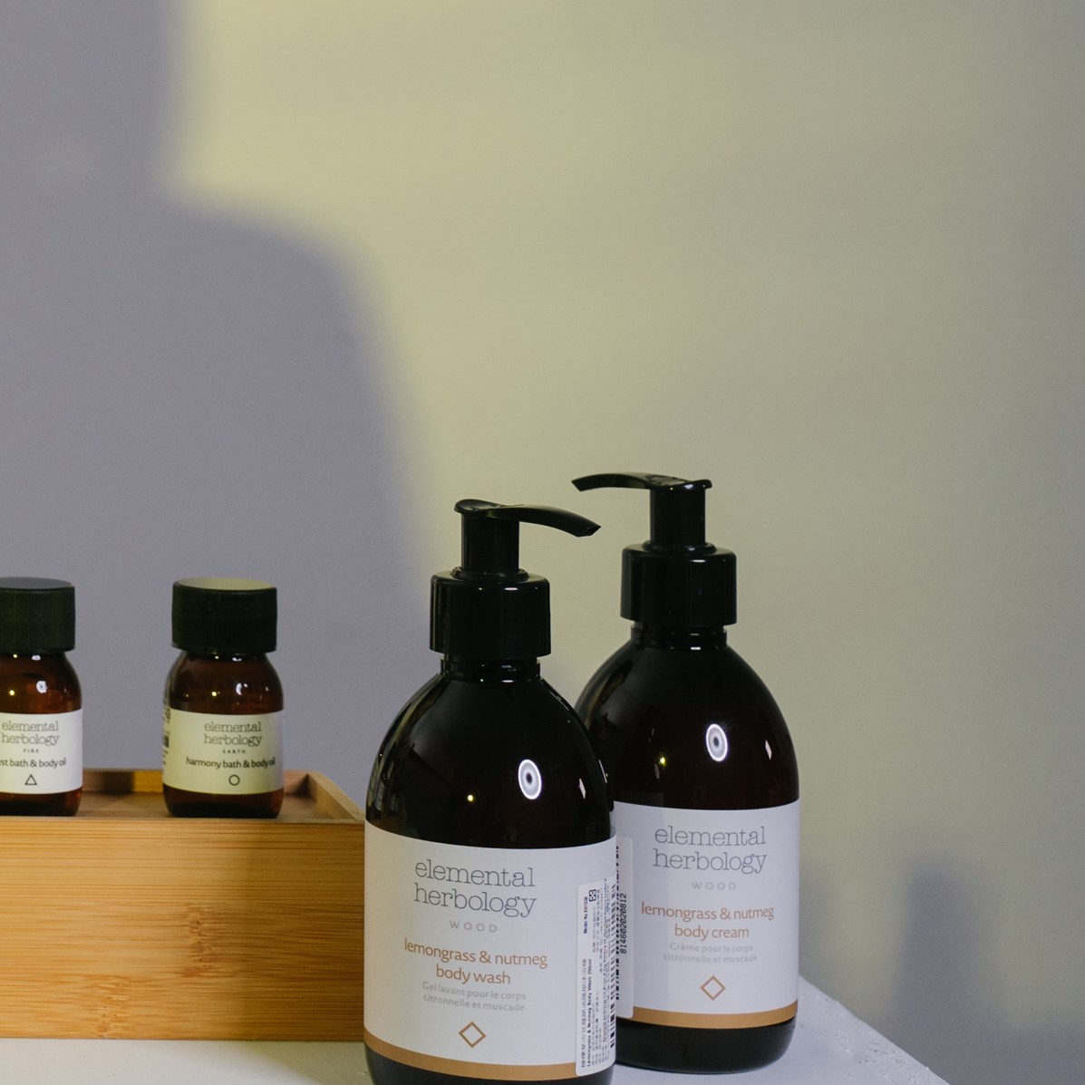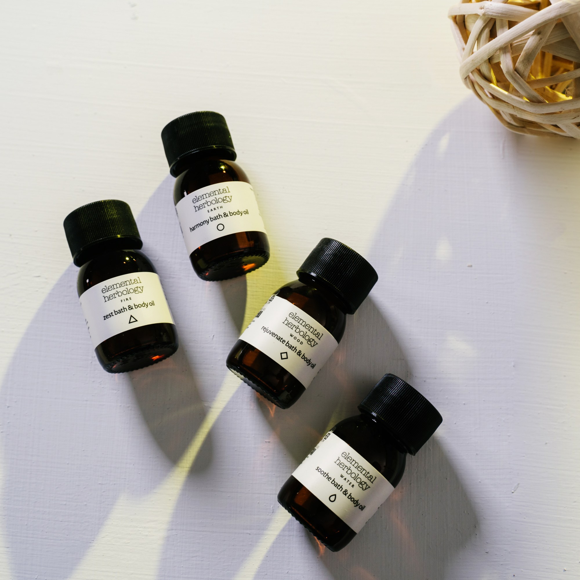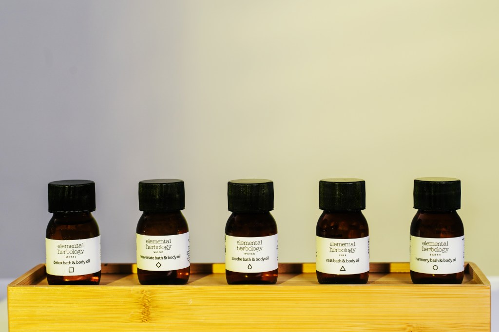 主要是身體乳跟按摩精油的部份,Elemental Herbology以中國古代「五行」相生相剋的關係為基礎裡輪,將「木火土金水」的概念融入沐浴清潔、身體按摩油等產品,結合西方芳香療法,最終目的,是希望協調身心靈達到能量平衡。