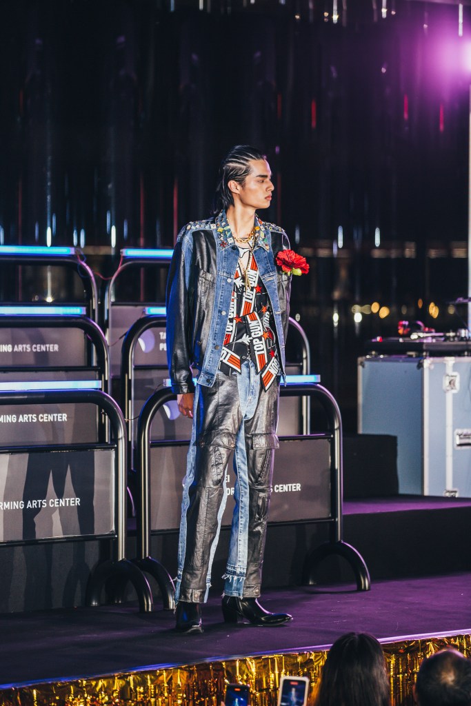 服裝以「Disco魔幻年代」為主軸,運用大量金屬、亮片、漆皮等元素貫穿全系列。模特邊走、邊跳、邊演、邊漏電,舉手投足充滿戲劇張力,演繹當時傳奇人物的風采,將時尚秀變成一場圈內人限定的狂歡派對。擅長賦予舊衣全新生命的設計師,這次不但改球衣、改西裝,還有一套使用超過300片廠商淘汰的二手繡片製成的閃亮小洋裝,舊物新用、風格重塑,完全是服裝轉譯之神。