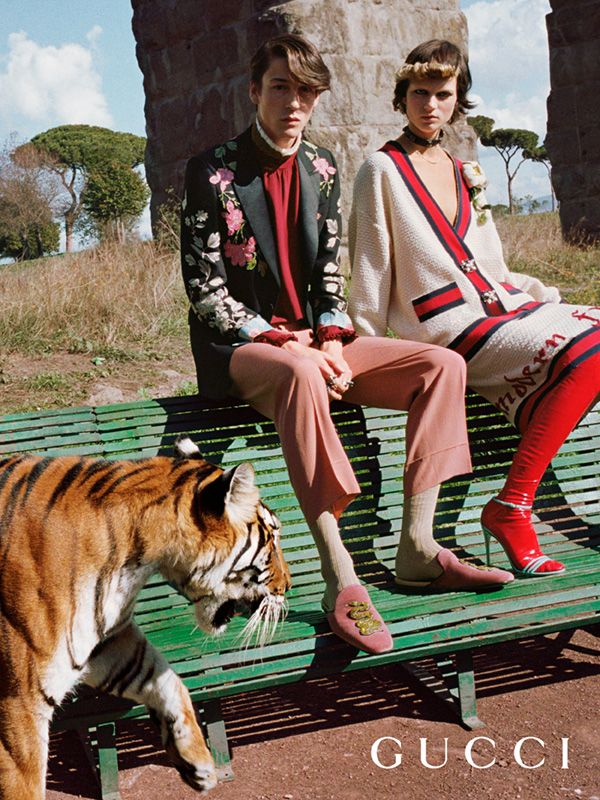 考慮到數位世代在開放自由的年代中長大,從小使用各式各樣的數位工具,接觸千奇百怪的論述與資訊,比起受到大眾傳播媒體統一資訊灌溉成長的前人,年輕世代與生俱來就是更加多元與包容:他們尊重他人的不同,也希望他人欣賞自己的獨特。所有的問題都可以接收開放式的回答,這其中當然也包含性向。這與GUCCI這幾年溝通的訴求不謀而合,畢竟Alessandro Michele  2015的第一場秀,就已經讓陰柔的男模上場駕馭女裝。作為觀眾,你能感受到他在傳遞的並不是突破框架的奮鬥意志,而是自由駕馭隨心所欲的不羈與浪漫。光是這一點,又更接近青年人的心思:多元性別不應該是一種需要強力爭取的特權,而是與生俱來,只需要順勢而為。