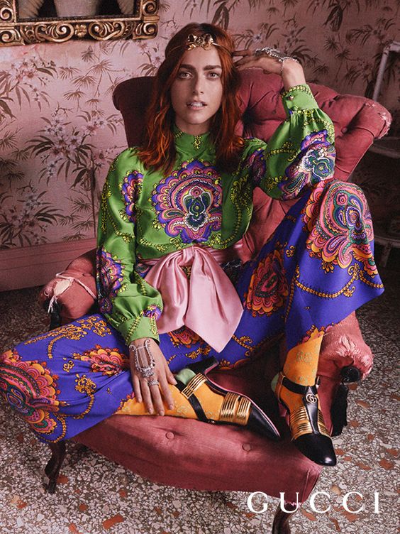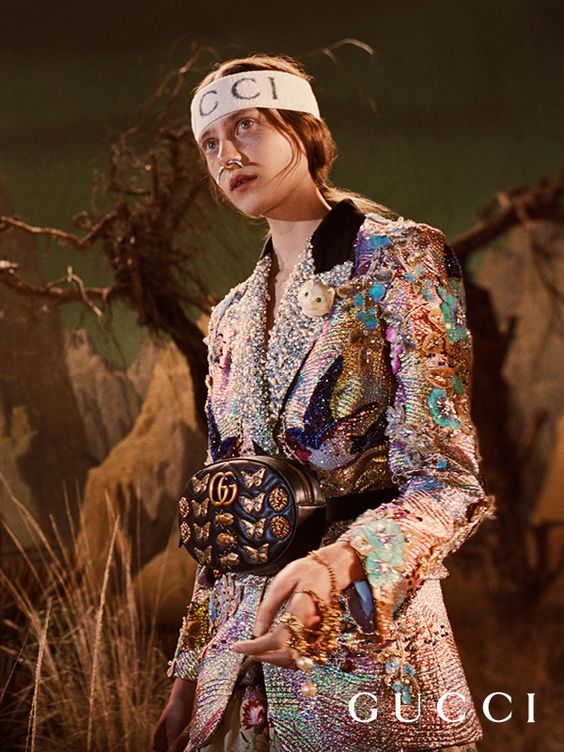 直白破題,AM所帶領的,是一種華美極繁、包羅萬象的浪漫復古文青風,他啟用的模特沒有強烈的男女特徵,走中性路線。他的服裝設計沒有標誌性單品,而是混搭各種風格融合混搭而成的新古著。他的GUCCI 一年只辦兩場秀,而且不以季節區分,改以AM喜愛的音樂類型作為系列發表的主題。跨越時代與性別的溝渠,展現自由奔放的浪漫情懷。假設年輕人也如同前人一般,都將服飾單品視為個人意志的具體宣示,那麼GUCCI 所代表的懷舊與自由,多元包容與任性混亂,做為當代年輕人的自我表述,正是恰如其分,再完美不過。